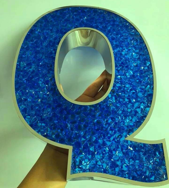 - Mặt chữ được đổ hạt nhựa giả đá kết dính bằng keo chuyên dụng tạo hiệu ứng long lanh, lấp lánh